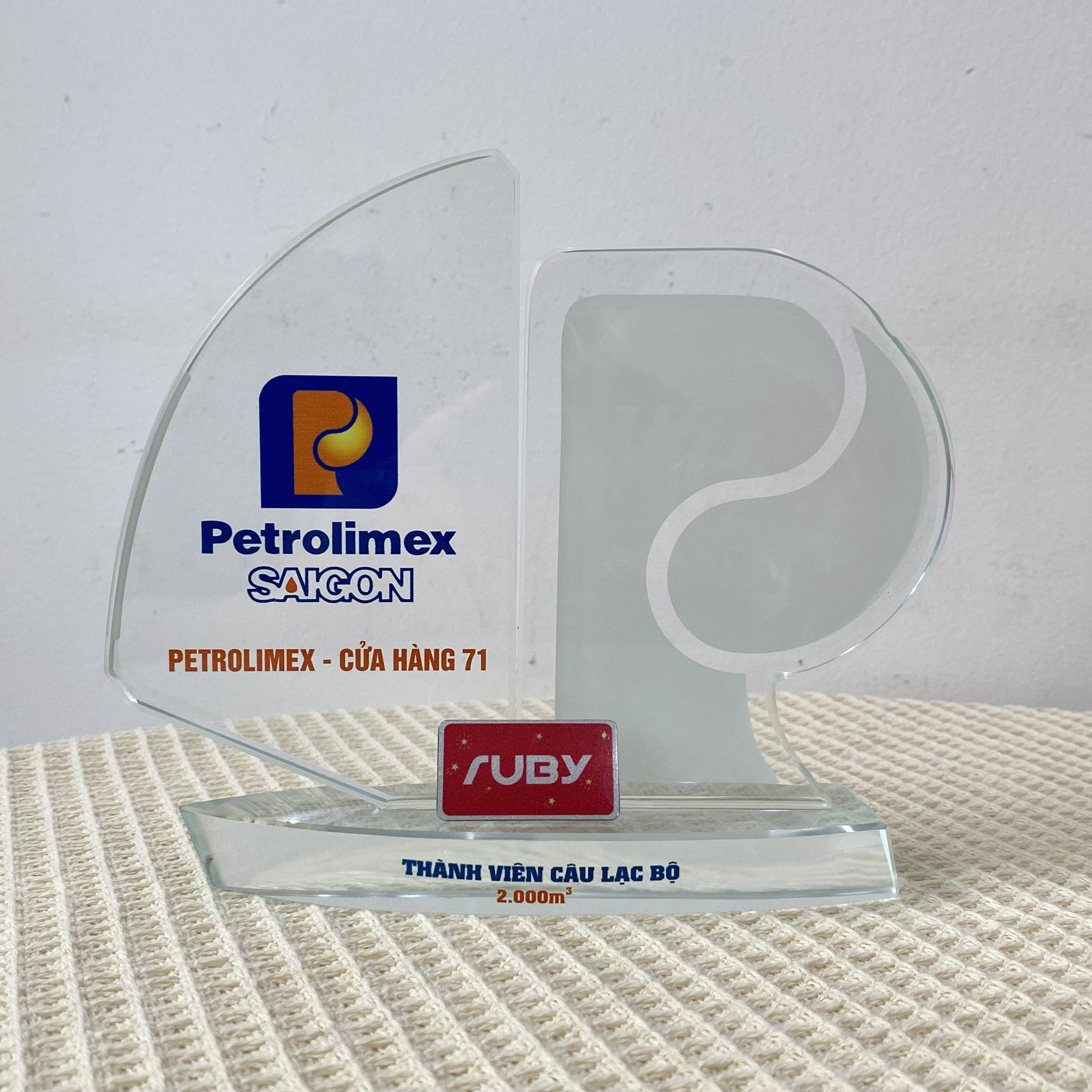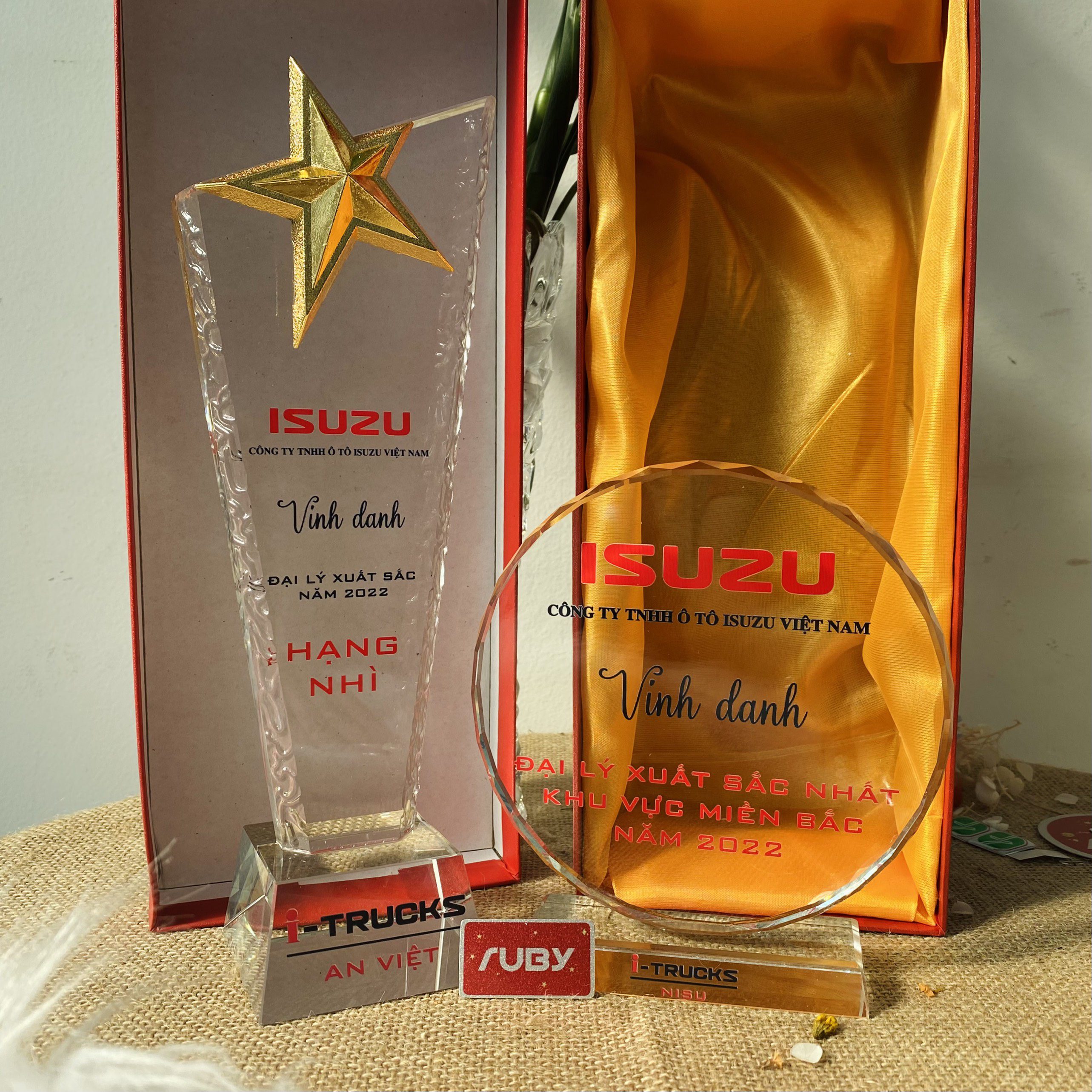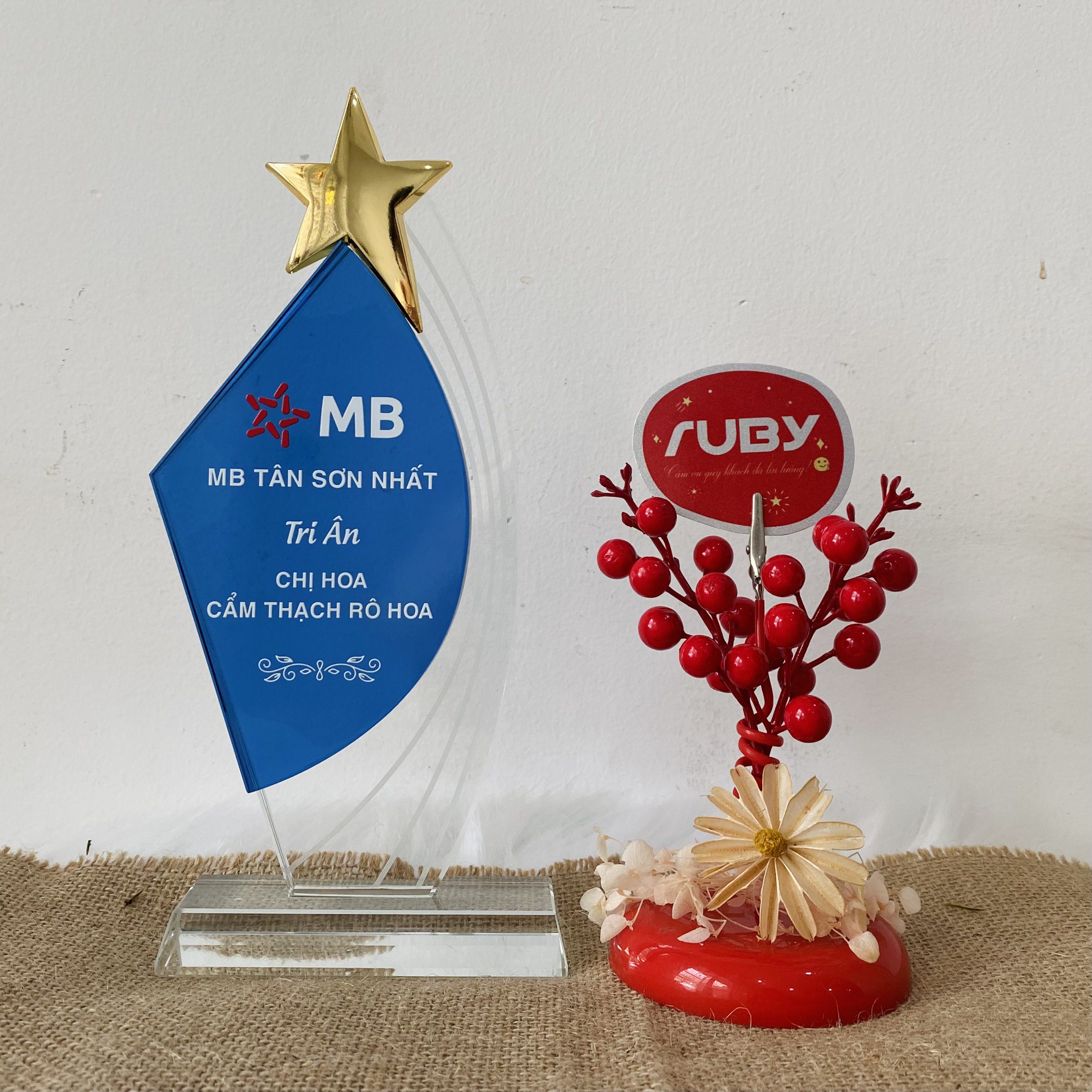 Kỷ niệm chương phối mica đỏ vạt chéo trong suốt